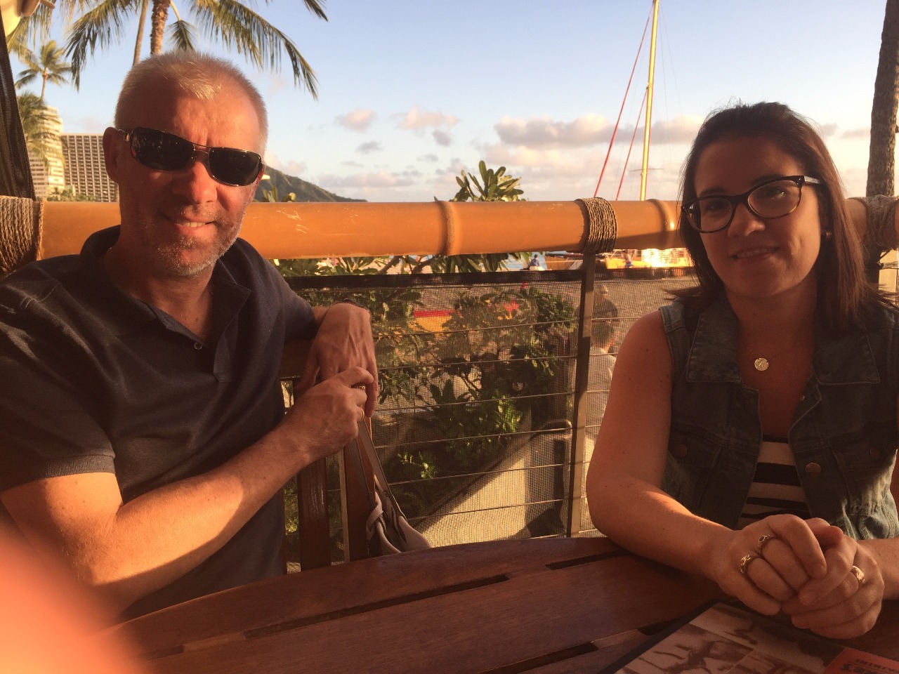 After showers and a quick bite to eat we headed off on the 35 min drive to Waikiki’s Ala Moana shopping centre. We shopped until we dropped there and that peaked at about 4.30 pm. The drive downtown to find parking for dinner went smoothly and we showed Matt the Banyan Tree Courtyard at the Moana Surfrider before heading to Dukes for sunset drinks.