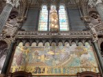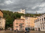 It was 4 pm before we ventured out from the apartment. This was rather poor timing because it had been fine all day but, as soon as we stepped out the door, it started to rain. Anyway we walked 20 minutes to catch the funicular up to Fourvière to see the Basilica Notre Dame. This is well worth doing. The inside of this Notre Dame Cathedral is the most beautiful of any church that I have ever seen. It has the most spectacular mosaics along its internal walks that make this Cathedral so appealing. There is a panoramic viewing platform just to the side of the cathedral and this offers great views back over Lyon.